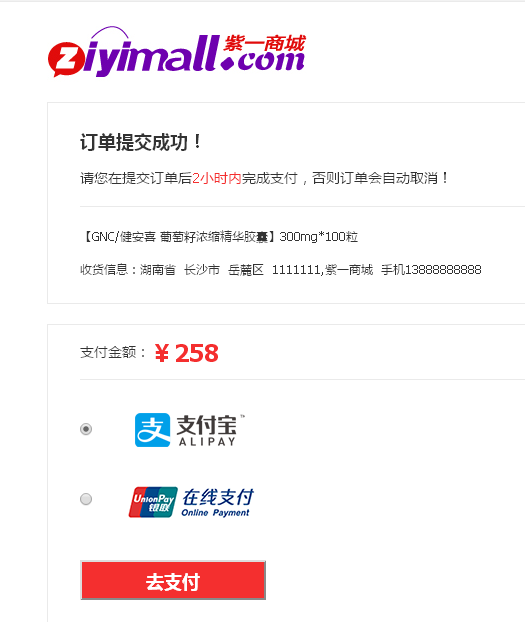 1、選擇“在線支付”點擊“去支付”
