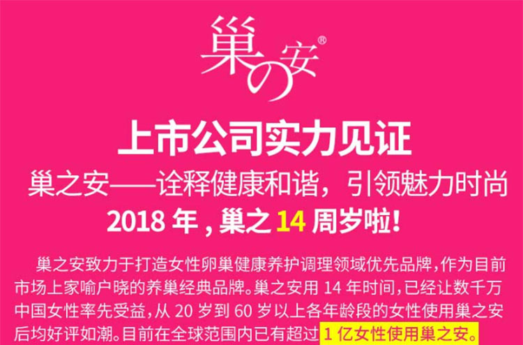 巢之安是真的有效果,這個品牌已經(jīng)有18年的歷史了,品牌專注做女性健康類的保健食品,建議選擇正規(guī)渠道進行購買。巢之安的產(chǎn)品有很多,以巢之安鳳凰膏為例,其含有烏雞、桂圓、覆盆子、大棗、血橙等藥食同源的成分,這些成分可以起到補氣血、滋陰益氣的效果,還能夠改善睡眠質(zhì)量以及肌膚狀況,幫助女性維持良好的身體健康狀況,但也要注意的是需要按照正確的用法用量服用。