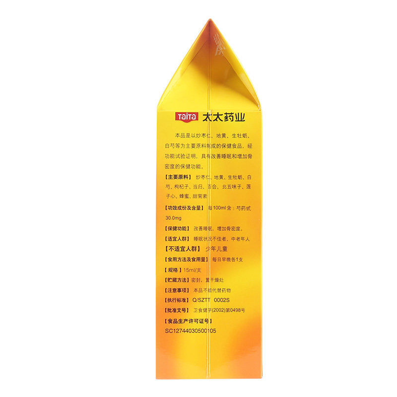 太太靜心口服液主要成分包含有炒棗仁、地黃、生牡蠣、白芍等,這些成分都是非常安全的,不會對身體產(chǎn)生副作用以及危害的。但是一定要注意按照正確的方法進(jìn)行服用,建議每天早晚各一支即可,不建議超過推薦量或者和同類的營養(yǎng)補(bǔ)充劑同時(shí)食用。這是一款具有藍(lán)帽認(rèn)證的產(chǎn)品,具有改善睡眠和增加骨密度的功效和作用,針對于平時(shí)經(jīng)常熬夜、上火以及睡眠質(zhì)量差的人群是非常適合的。